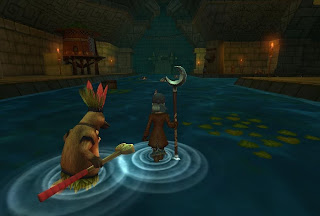 Once through t' Bees they come out into a area where this troggie named Hopper wants t' talk t' them , Mina looks at Mormo " see that all troggies bad this one be good". Hopper explains they need t' talk t' Aguirre. Mina finds Aguirre and whisper t' Mormo I think these monkeys be a bit crazy, Mormo agrees.They be tellin' Mina they already got a Gold Monkey, Mina says no we want t' fins Gortez. T' Monkeys proceed t' tell Mina she be not ready. T' Watermole standin' with t' Monkeys tells Mina and her t' crew smash Clockworks and t' destroy their Captain and they can pass. So off They go inside t' Pyramid t' find t' Clockworks Captain. Mina out....